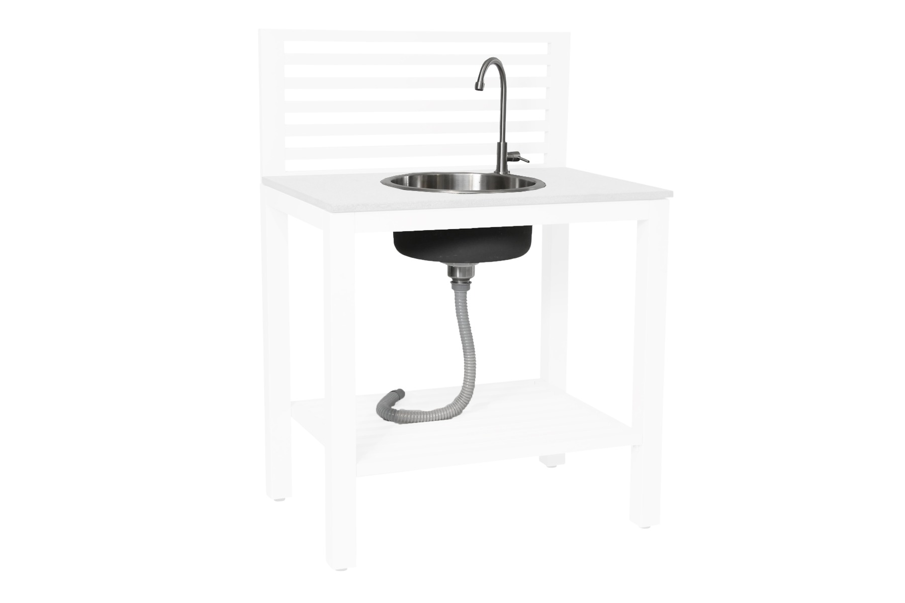 Bellac-serien är ett utmärkt val för dig som söker ett modernt och snyggt utekök. Kökets olika delar gör det möjligt att skapa en flexibel lösning som passar dina behov samt storleken på din uteplats. Produkterna i denna serie från Brafab är tillverkade i matt pulverlackad aluminium med en toppskiva i grå granit. I de fall där möblerna i serien försetts med en vask och kran så är dessa delar tillverkade i rostfritt stål. Den väl tilltagna bänken är försedd med en praktisk hylla. Denna produktserie från Bellac består av olika lättplacerade moduler som ger dig en stor frihet att skapa ditt drömkök för utomhusbruk.