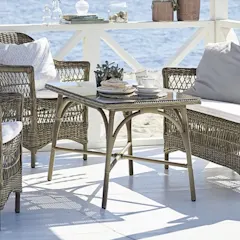 Det tredje materialet som vi fokuserar på i vårt sortiment är konstrotting. Det är ett syntetiskt material som är framtaget för att efterlikna naturrotting och finns i många olika färger. Till skillnad från naturrottingen är konstgjord rotting mycket väderbeständig och håller sig oförändrad i många säsonger. Beroende på matgruppens formgivning kan materialet antingen ha ett modernt eller klassiskt uttryck.