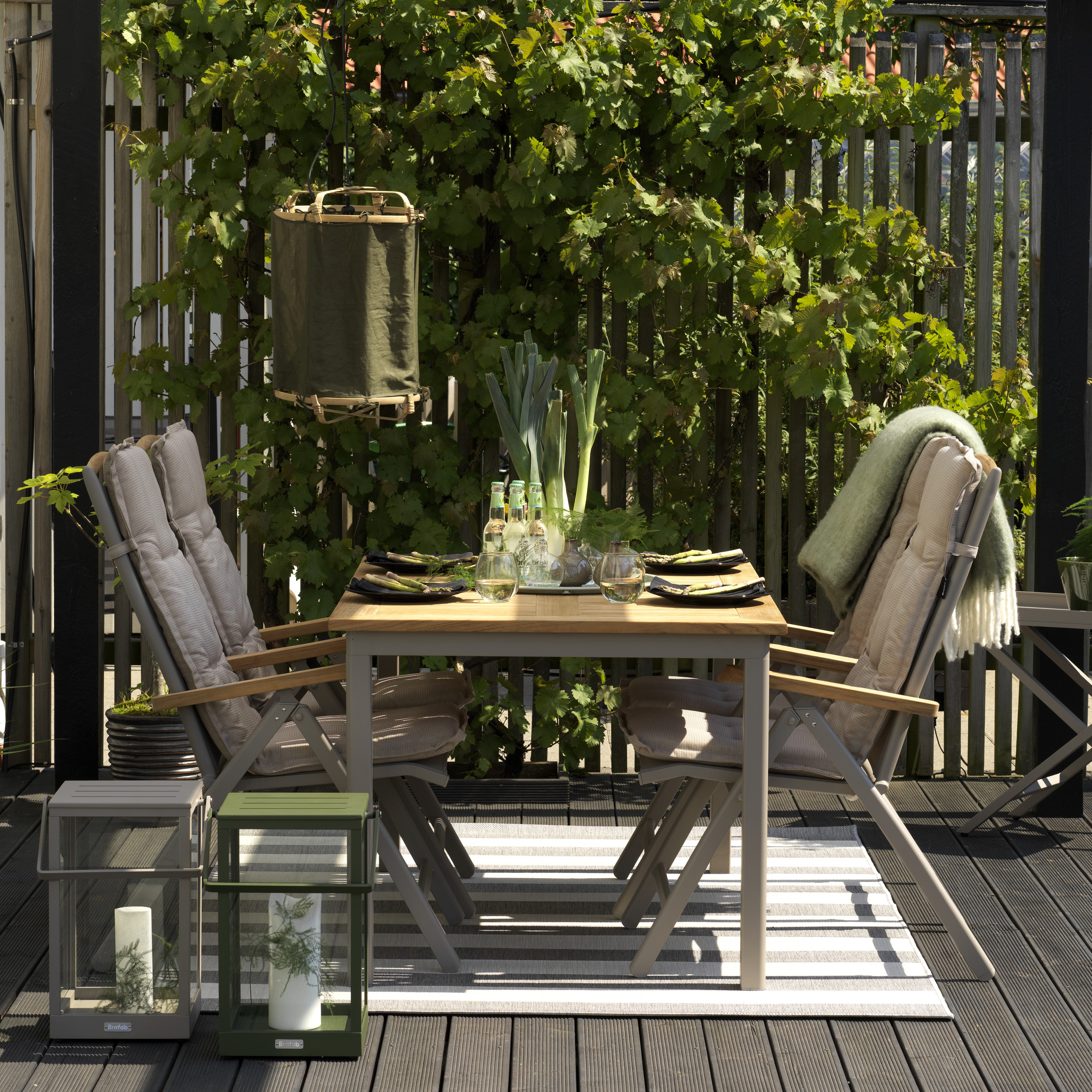 En matgrupp är som gjord för all typ av umgänge. Här samlas vi när det är dags för middag, en svalkande läsk eller ett parti kort. Oavsett om gästerna är många eller om det bara är familjen som ska slå sig ner är en matgrupp den ultimata utemöbeln. Här sitter du bekvämt långt in på småtimmarna.