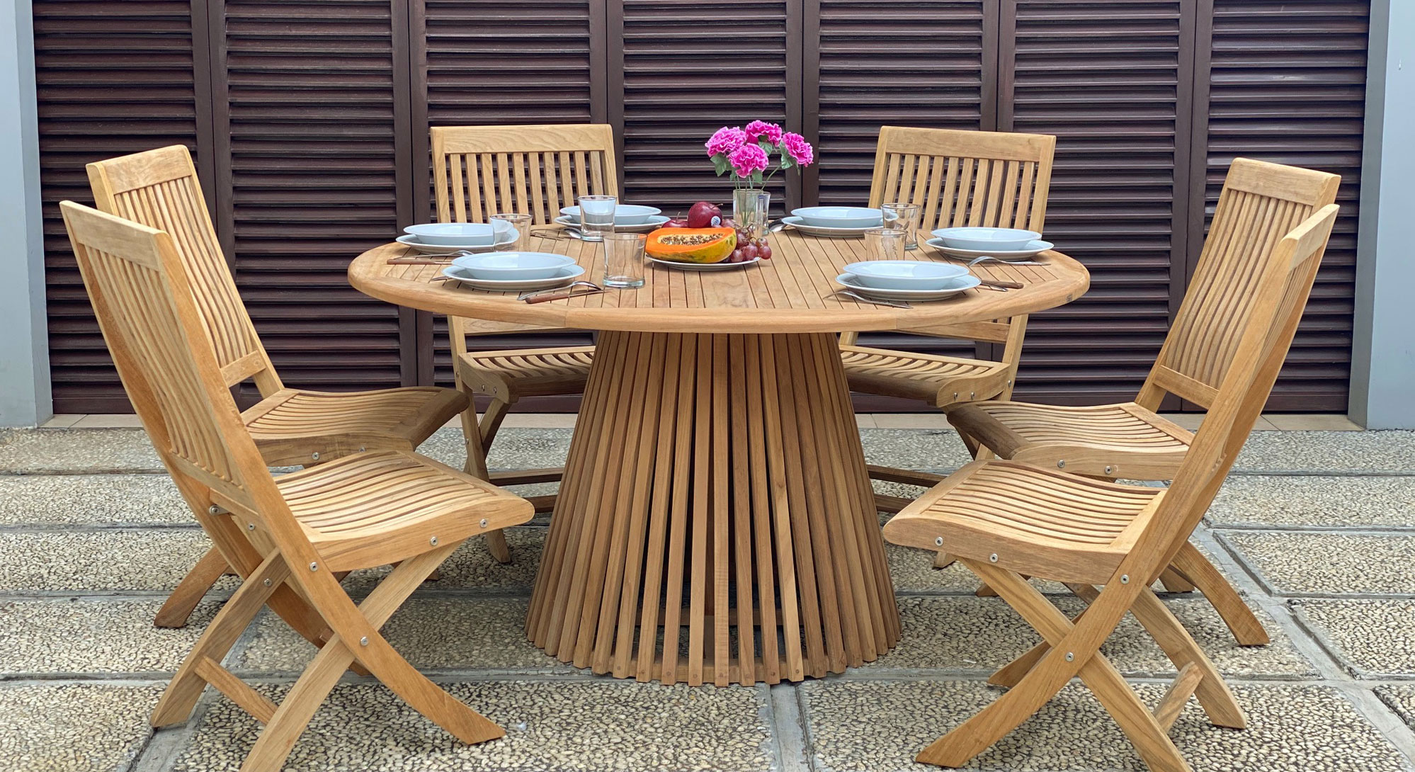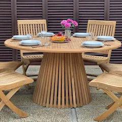Träslaget teak är ett naturmaterial som har en enorm motståndskraft mot röta, insekter och termiter. Det är ovanligt beständigt i utomhusmiljö och träet i sig motverkar rostangrepp på metall i anslutning till träet. Därför är det ett ytterst populärt material när det kommer till matgrupper. Dessutom får teak en vacker silvergrå yta med tiden.