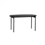 Ovalt soffbord i modern, stilren design. Bordsskiva i borstad svartmålad ekfaner och ben i pulverlackerad metall. Soffbordet ingår i vår serie Sky.