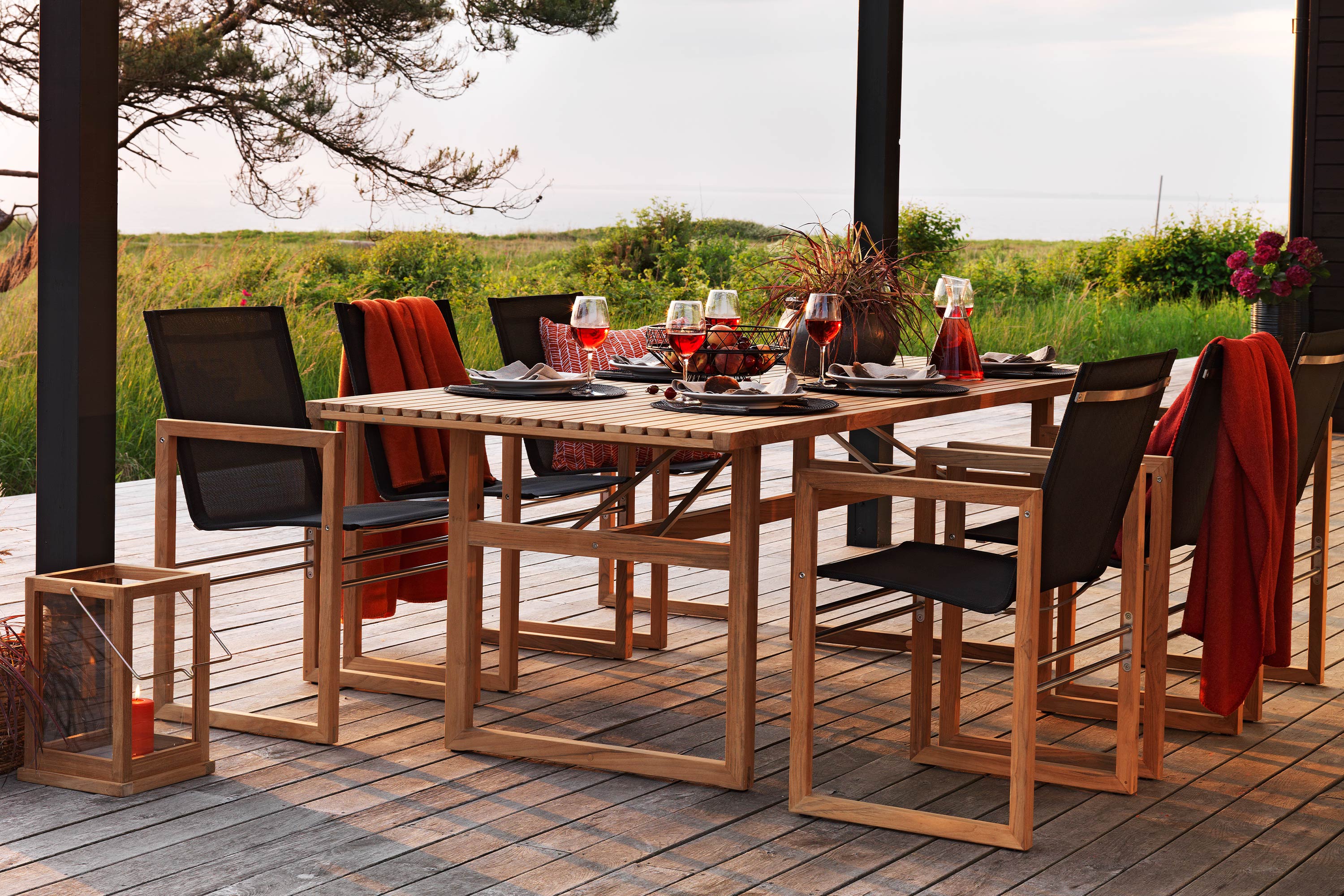 Vevi-serien från Brafab består av möbler som har en rustik, naturlig och stilren känsla. I serien Vevi matgrupp finner du bord och karmstolar som alla har kubiska former och som är tillverkade med en stomme av teak. Tillsammans med de rostfria detaljerna och stolsitsarna som är tillverkade i svart textilene skapar det en möbel som är hållbar, stilren och som garanterat ger ett väldesignat utseende till din uteplats. De raka linjerna och det eleganta utseendet gör att denna möbel passar till de flesta trädgårdar. Du kan välja att köpa bord och stolar för sig, eller som en hel matgrupp. Då ingår ett stort bord och sex stycken karmstolar.