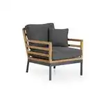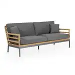 Zalongo soffgruppTeak med gråa dynor3-sitssoffa, 2 fåtöljer & bord